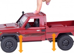 Geniet van dynamisch rijden met de gedetailleerde RC pick-up TOYOTA LAND CRUISER. Het model kopieert het iconische design, biedt stabiele ritten over obstakels dankzij de vering en uitstekende tractie dankzij de 4x4-aandrijving. De moderne 2,4 GHz zender zorgt voor vloeiende en precieze besturing zonder interferentie.