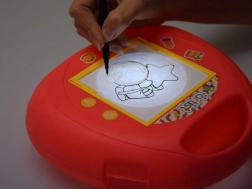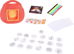 De set bevat vijf gekleurde stiften en diverse thematische dia’s voor eindeloze tekenmogelijkheden.