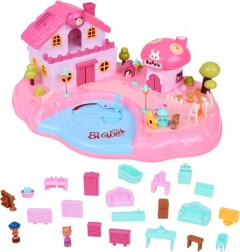 Ontdek een betoverend huis in de tuin: een open huis met een winkel in de vorm van een vliegenzwam, een vijver met controller en een speeltuin nodigt kinderen uit tot eindeloos verhalen vertellen. Verborgen magnetische inductie brengt figuurtjes en scène-details in beweging – schuif simpelweg de controller op het vijvertje en laat ze naar de tuin, de speeltuin of de winkel gaan.