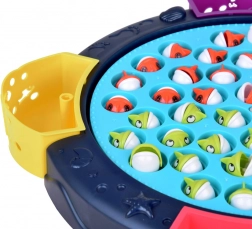 Een leuk interactief spel voor kinderen en ouders, waarin je visjes uit een roterend vijvertje vangt met behulp van hengels. Het spel is geschikt voor tot 4 spelers, bevat 45 visjes in vrolijke kleuren en speelt borrelende watergeluiden en een vrolijke melodie af. Stimuleert fijne motoriek en oog-handcoördinatie. Geschikt vanaf 3 jaar, voeding 3× AA.