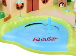 Verborgen magnetische inductie en een bedieningsstokje maken het mogelijk de figuurtjes soepel over de blauwe vijver en het hele decor te verplaatsen. Kinderen oefenen hun coördinatie en ontdekken tegelijk de principes van magnetisme.