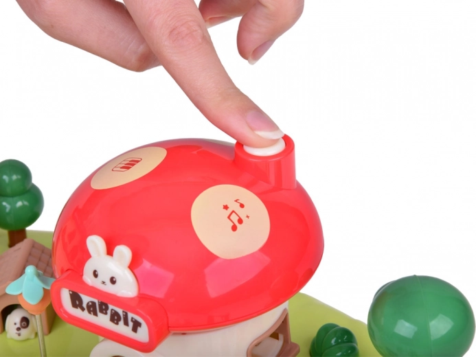 Dit interactieve magnetische huisje creëert een kleurrijke speelscène met een tuin, vijver en paddenstoelenwinkeltje. Met het bedieningsstokje schuiven kinderen de figuurtjes over de blauwe vijver, die dankzij magnetische inductie soepel over het hele decor bewegen – van de wortelbedden via de speelplaats tot een bezoek aan het huisdiertje. Het paddenstoelenhuis heeft functionele knoppen voor licht- en geluidseffecten en een stijlvolle “Rabbit”-signering die in het ritme oplicht.