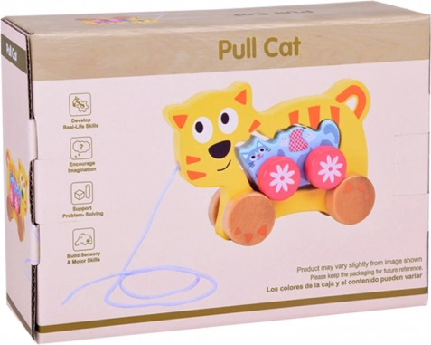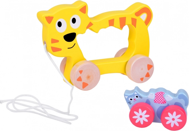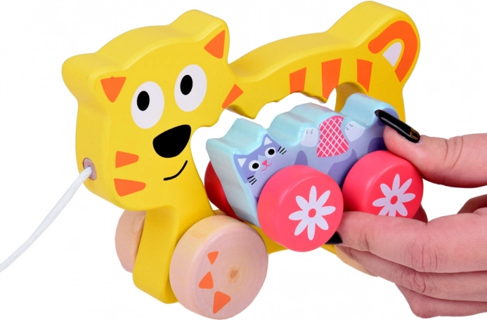 Houten trek-katje 2-in-1 – gezin op wieltjes