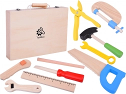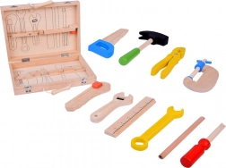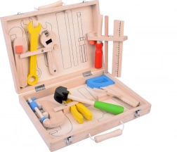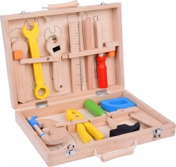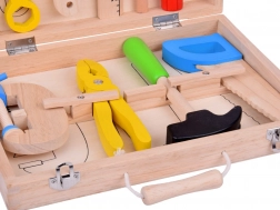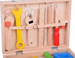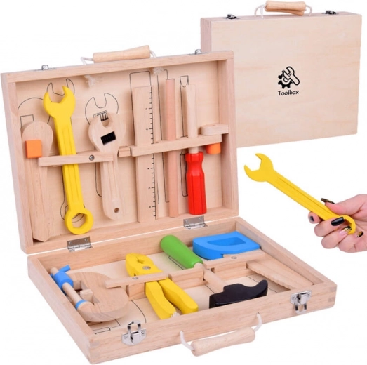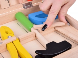 Deze houten gereedschapsset is ontworpen om perfect in kleine handjes te passen en kinderen te motiveren om actief de wereld van repareren en creëren te ontdekken. Dankzij realistische maar veilige vormen maken kinderen spelenderwijs kennis met hoe een hamer, zaag, schroevendraaier en sleutels werken.