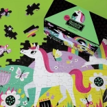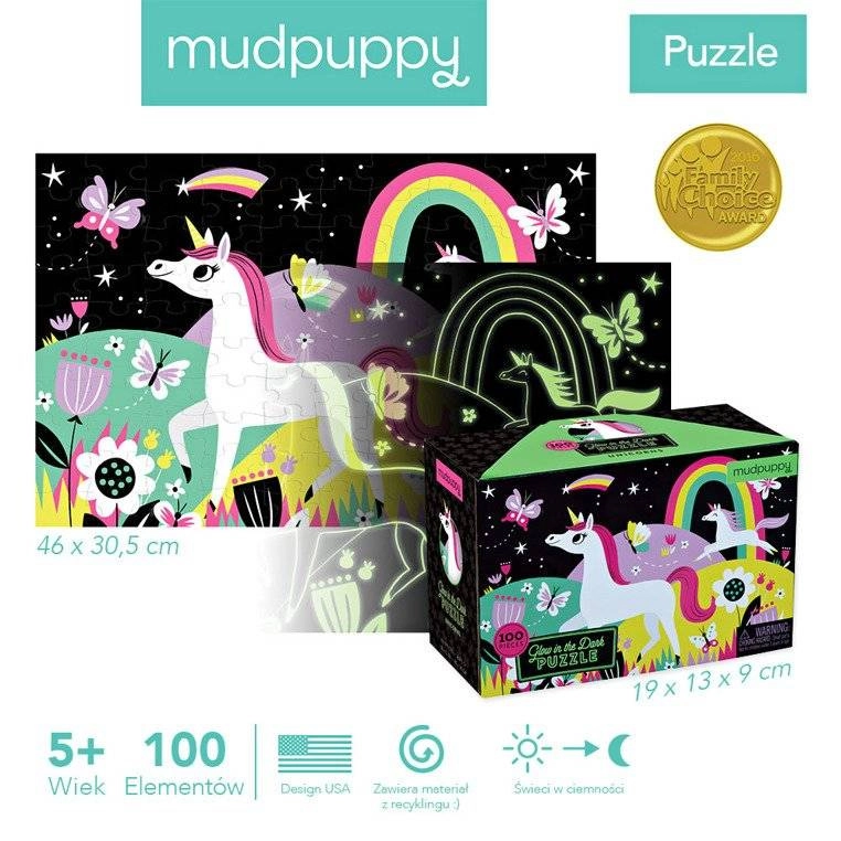 Ontdek de magie van puzzelen met een eenhoornthema dat in het donker oplicht zodra het licht uitgaat. Kwalitatieve puzzel van 100 stukjes gemaakt van gerecycled papier met een precisie-stans, een matte afwerking voor levendige kleuren en niet-giftige inkten. In de doos vind je ook een voorbeeldafbeelding en een stevige doos van gerecycled karton.