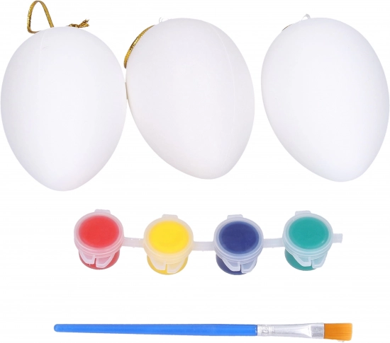 Eieren om te beschilderen 5 × 8 cm, set van 3 stuks met verf en penseel