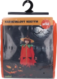 Schattig en gemakkelijk aan te trekken pompoen-carnavalskostuum voor kinderen met een lengte van 110–120 cm. Inclusief cape en hoed, ideaal voor carnaval, Halloween en kinderfeestjes.