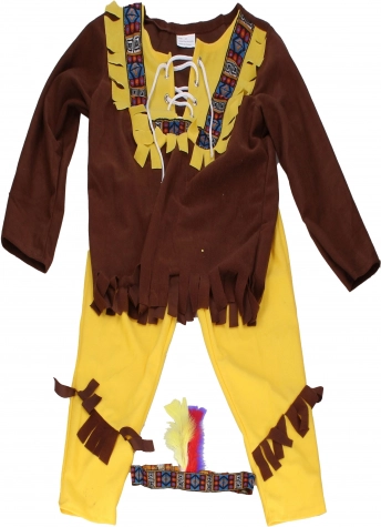 Kinder carnavalskostuum indiaan in maat M voor een lengte van 110–120 cm, perfect voor kleine avonturiers. Bevat een shirt, broek en hoofdband voor snel en eenvoudig verkleden.