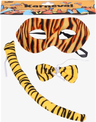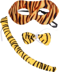 Verander jezelf in een oogwenk in een ongetemde roofdier! Deze carnavalsset bevat alles wat je nodig hebt voor een snelle en leuke transformatie – een masker, staart en vlinderdas. Ideaal voor carnaval, kinderfeestjes en themafeestjes.