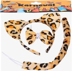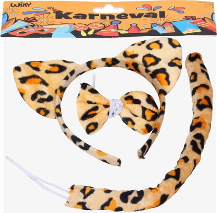 Verander je in een handomdraai in een ongetemde roofdier! Deze carnavalsset tijger bevat alles wat je nodig hebt voor een snelle en opvallende metamorfose – diadeem met tijgeroortjes, stijlvolle vlinderdas en lange staart. Ideaal voor carnaval, kinderfeestjes, gemaskerde bals en themafeestjes.