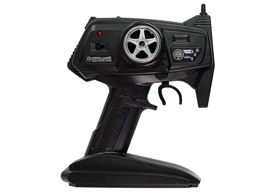 In de set zit een ergonomische controller die werkt op 2,4 GHz en storingsvrij rijden in een groep mogelijk maakt. Met besturing in alle richtingen ontdek je nieuwe routes en neem je hellingen tot 45 graden.
