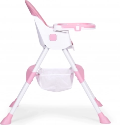De praktische mand onder de zitting biedt plaats aan slabbetjes, doekjes of speelgoed. Na het eten klap je de stoel eenvoudig in met de zijknoppen om ruimte te besparen.