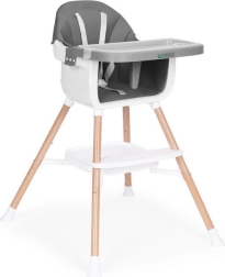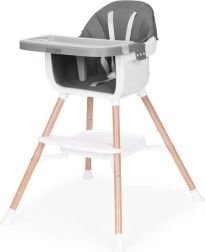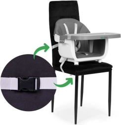 De 2-in-1-variant maakt het mogelijk de poten te verwijderen en het zitje veilig met riemen op een gewone stoel vast te zetten – ideaal voor op reis en aan de eettafel.