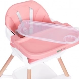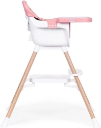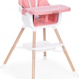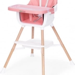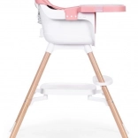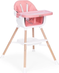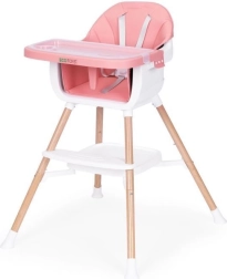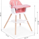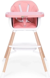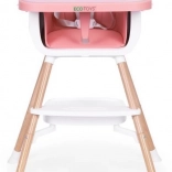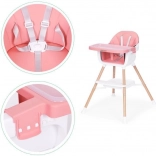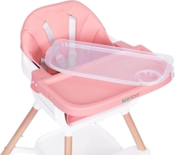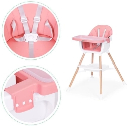 Praktische 2‑in‑1 kinder eetstoel van het merk ECOTOYS voor kinderen van 6 tot 36 maanden, combineert een hoge stoel en een los zitje voor op een gewone stoel. Biedt een stabiele metalen constructie, bekleding van duurzaam en gemakkelijk afwasbaar ecoleer, een tweedelige afneembare dienblad geschikt voor de vaatwasser, een 5‑punts veiligheidsgordel, antislipdoppen, een anti‑wegglijstop en een praktische plank onder de zitting. Maximale draagkracht 20 kg.