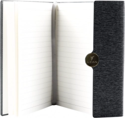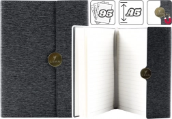 Elegant zwart schrift in A5-formaat, ideaal voor het organiseren van uw gedachten en dagelijkse planning. De stevige magnetische sluiting en geweven bladwijzer zorgen voor comfortabel en veilig gebruik.