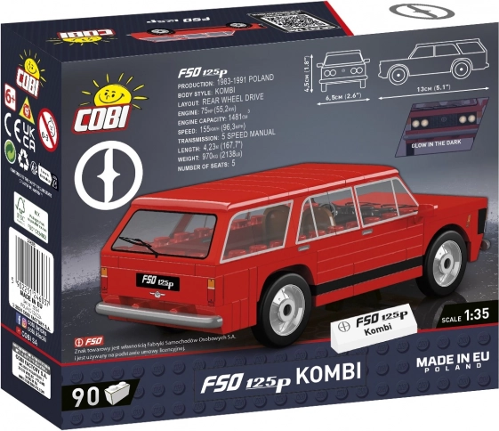 Deze gelicentieerde bouwsteenenset van de FSO 125p Kombi vangt trouw de karakteristieke vormen van de legendarische gezinsauto, bekend om zijn ruime bagageruimte en betrouwbaarheid. De schaal 1:35 biedt een uitgebalanceerde verhouding tussen detail en formaat, waardoor het model zowel geschikt is voor een vitrinekast als om mee te spelen.