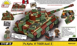 Dit nauwkeurig uitgewerkte model is gebaseerd op de beroemde tank Pz.Kpfw. VI Tiger Ausf. E met tactisch nummer 114, bekend van het Musée des Blindés in Saumur. Dankzij de rijke details, authentieke camouflage en functionele elementen geniet je zowel van het bouwen als van het spelen. Het bevat een uitneembare bouwsteenmotor Maybach HL 210, een draaibare koepel en kanon met elevatie, te openen luiken en realistische tractie van de rupsbanden.