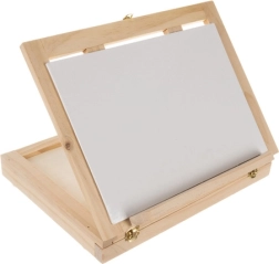 De houten koffer is voorzien van een lade en een ezel, wat zorgt voor eenvoudig transport en organisatie van je kunstbenodigdheden.