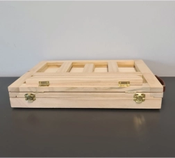 De koffer is gemaakt van duurzaam hout en is voorzien van een ezel voor comfortabel schilderen. Alle tools en accessoires zijn zo georganiseerd dat ze gemakkelijk toegankelijk zijn en goed beschermd tijdens het vervoer.