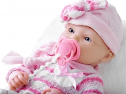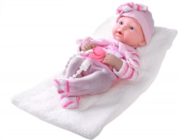 Een schattige babypop in een roze gebreide outfit die elke kleine verzorger zal verrassen. Biedt een realistische uitstraling, bewegende armen, benen en hoofd, een praktische fopspeen aan een ketting en een zacht kruikenzakje/dekentje voor comfortabel inwikkelen. Geweldig speelgoed voor de ontwikkeling van empathie, fantasie en verantwoordelijkheidsgevoel.