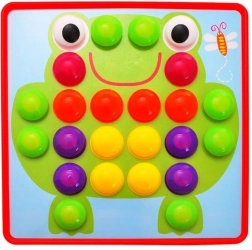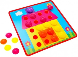 De creatieve mozaïek met pinnen is een geweldige keuze voor nieuwsgierige kinderen. De set bevat gekleurde pinnen, een kunststof bord en voorbeeldkaarten waarin kinderen de pinnen volgens de kleuren of hun eigen fantasie plaatsen. Het spel stimuleert creatief denken, kleuren herkennen en de fijne motoriek.