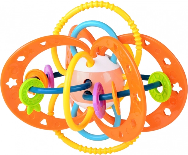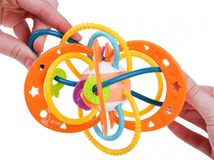 Deze kleurrijke bijtring met rammelaar biedt je baby volop prikkels voor de zintuiglijke ontwikkeling. De verweven lusjes zijn gemakkelijk vast te pakken door kleine handjes, afwisselende texturen masseren het tandvlees en verlichten het ongemak bij het doorkomen van tandjes. Het lichte ontwerp is ideaal voor thuis en onderweg.