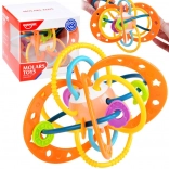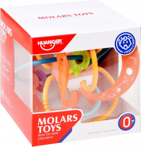 Lichte en veilige sensorische bijtring met verweven, kleurrijke lusjes ondersteunt de fijne motoriek, verzacht bij doorkomende tandjes en nodigt uit om verschillende texturen en vormen te ontdekken. Alle randen zijn rond en de materialen zijn veilig voor kinderen vanaf 0 maanden.