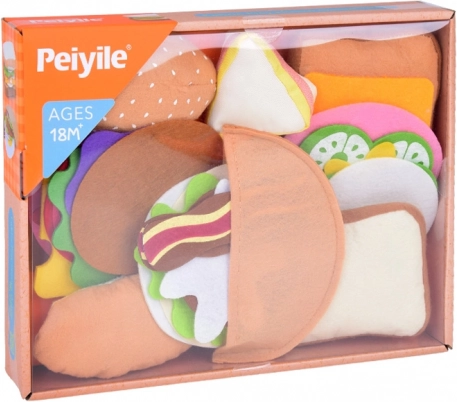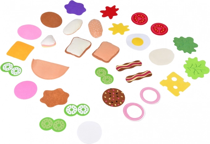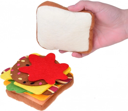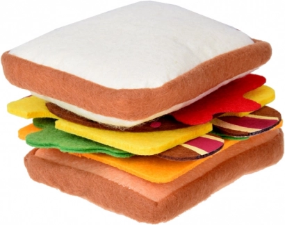 Deze uitgebreide set bevat alles wat nodig is voor drie soorten “sandwiches” – van toast tot pita en broodje. Kinderen kunnen naar wens sla, tomaat, komkommer, ui en de bijzondere “ingelegde watermeloen” stapelen, aangevuld met ham, spek, salami, roastbeef, plakje kalkoen, ei en kaas. Doordachte vormen en kleuren zorgen voor een realistische look, terwijl alle onderdelen zacht en veilig zijn.