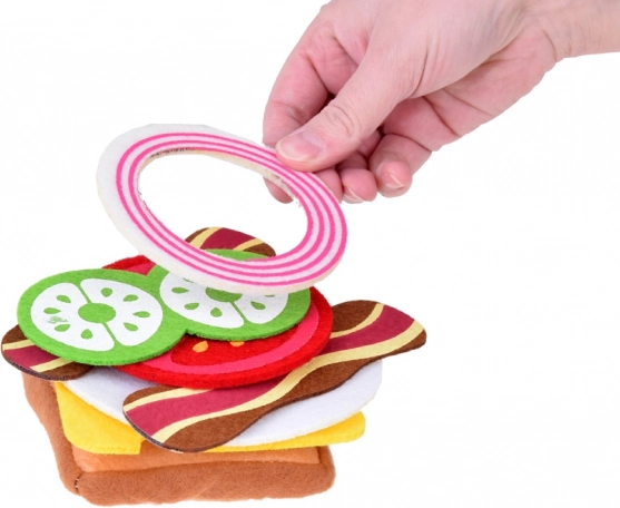 Kinderen stapelen brood, groenten, kaas en “vlees” en creëren hun eigen recepten. Ideaal voor fantasiespel en het leren van kleuren en vormen.