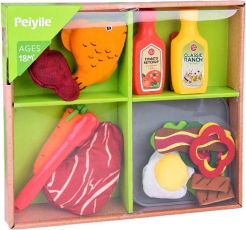 Deze uitgebreide set textielvoeding brengt kinderen plezier in het doen-alsof-koken. Realistische vormen en kleuren ondersteunen het natuurlijke leren over voeding en de ontwikkeling van vaardigheden bij serveren en koken. Zachte materialen zijn vriendelijk voor kinderhanden en ideaal voor dagelijks spel.