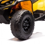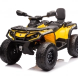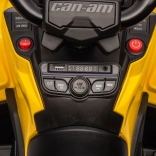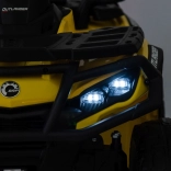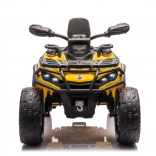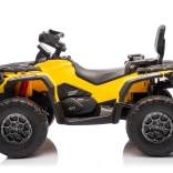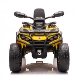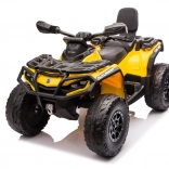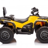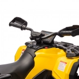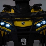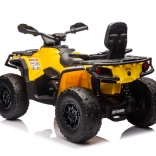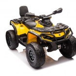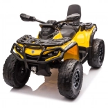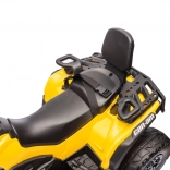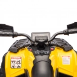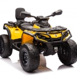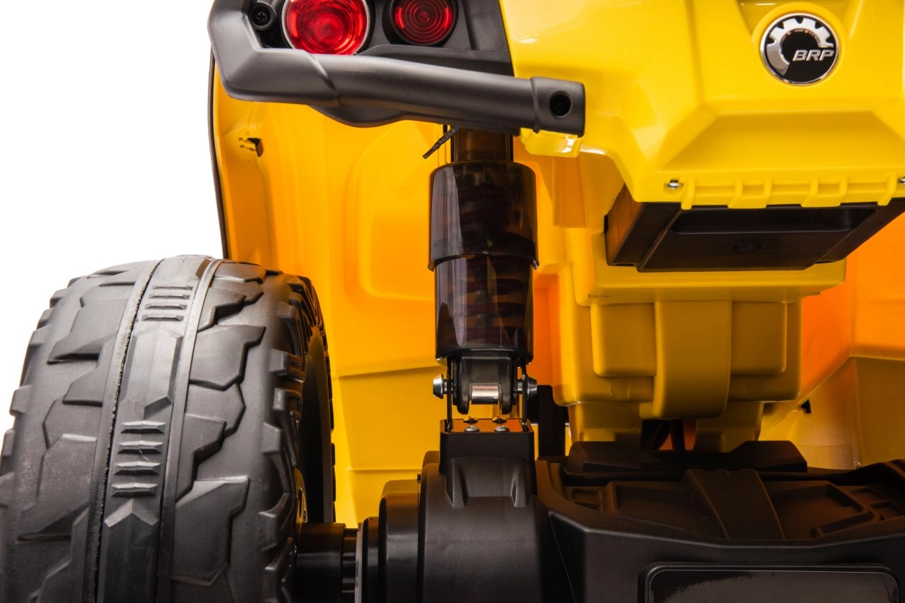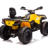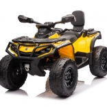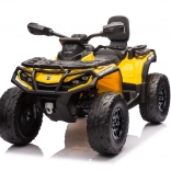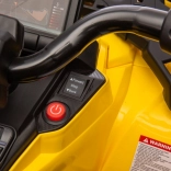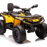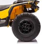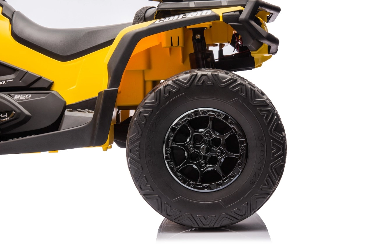 De Can-Am Outlander ATV-quad in een opvallende gele kleur is ontworpen om een echte ATV realistisch na te bootsen. Hij is uitgerust met grote EVA-banden en een duurzame kunststof constructie, die duurzaamheid bij buitengebruik waarborgt. Verder beschikt hij over wielen met schakelbare 2- of 4-wielaandrijving, eenvoudig te wisselen via een bedieningstoets.