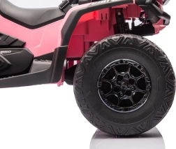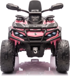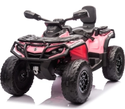 De roze kinderquad Outlander is ontworpen voor spannend buitenplezier. Dankzij vierwielaandrijving en krachtige motoren rijdt hij soepel, zelfs op ongelijke ondergrond.