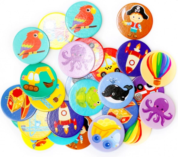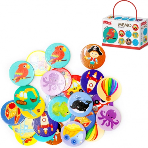 De speelset bevat 28 ronde kaartjes die speciaal zijn ontworpen voor jongens. Het memoryspel is niet alleen leuk, maar ook educatief, omdat het helpt het geheugen en de aandacht van uw kinderen te ontwikkelen.