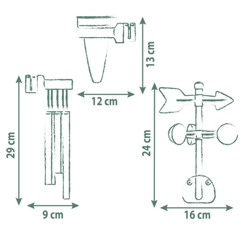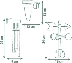 - Een windvaan/anemometer om windrichting en -snelheid te meten.