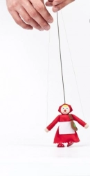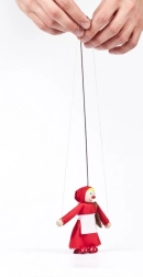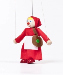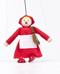 Een charmante marionet van Roodkapje uit de werkplaats van GERLICH, leuk voor zowel kleine als grote vertellers. Handgemaakt van hout en stof, 12 cm hoog (zonder bedieningsdraad), met beweeglijke armen aan touwtjes voor eenvoudig bedienen. Ideaal voor sprookjestheater, het stimuleren van de fantasie en de fijne motoriek.