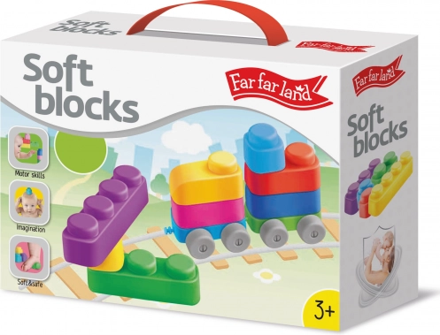 Far Far Land zachte bouwstenen voor kleine kinderen bieden veilige en creatieve speelplezier met tien stukken en acht wielen. Deze bouwstenen bevorderen creativiteit, motorische vaardigheden en hand-oog coördinatie. Gemaakt van zacht materiaal geschikt als bijtspeeltje.