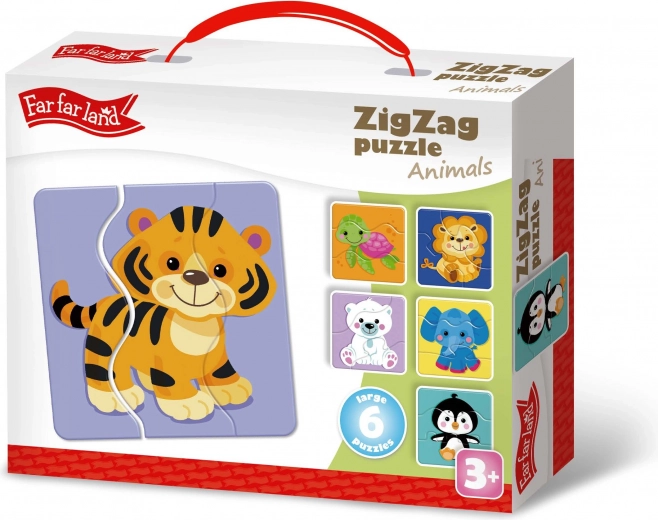 De ZigZag-puzzel van Far Far Land biedt plezier en onderwijskundige waarde dankzij de zigzag-uitsnijdingen en kleurrijke dierenmotieven. De set bevat 6 afbeeldingen.