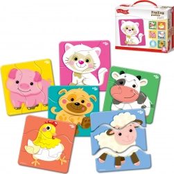 Puzzel ZigZag Huisdiertjes van Far Far Land is een speelgoedpuzzel voor kinderen vanaf 3 jaar en biedt plezier met huisdieren in 6 verschillende afbeeldingen. Kleurrijke ontwerpen en een speciaal zigzag-snijpatroon verrijken de speelervaring.