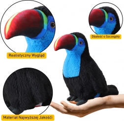Deze toekan combineert zachtheid en kwaliteit met een opvallend design. Zwarte veren met blauwe accenten en een meerkleurige snavel geven het speeltje een natuurgetrouwe uitstraling waar kinderen meteen van houden. Fijne naden en zorgvuldige afwerking zorgen voor een lange levensduur, ook bij dagelijks spelen.