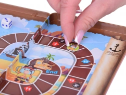 *De regels zijn eenvoudig* - gooi de dobbelsteen, beweeg over het speelbord en vermijd valkuilen zoals zwaarden en schedels die je kunnen vertragen. Het doel is om eerder bij de schat te komen dan de andere spelers, maar pas op, je moet een precies aantal gooien!