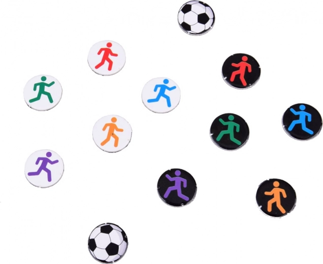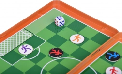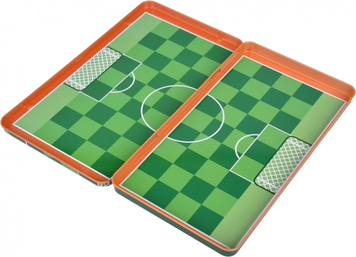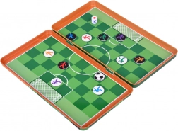 Magnetisch voetbal is de ideale keuze voor plezier onderweg. Dit spel biedt een compact formaat, een metalen bord en magnetische figuren voor gemakkelijk en comfortabel spelen. Spelers wisselen hun beurten af, verplaatsen hun figuren over het bord, springen over tegenstanders en proberen doelpunten te scoren vanaf de strafruimte. De eerste speler die 3 doelpunten scoort, wint. Geschikt voor alle leeftijden die van voetbal houden.