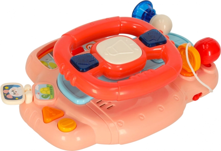 Het interactieve kinder-stuur is een geweldige speelgoedkeuze voor creatief spel thuis en onderweg. Het kind kan aan het stuur draaien en een klein autootje op het dashboard “besturen”, begeleid door motorstart, claxon, richtingaanwijzers met licht en vrolijke melodieën. Dankzij de mogelijkheid tot volumeregeling past het spel zich gemakkelijk aan de omgeving aan.