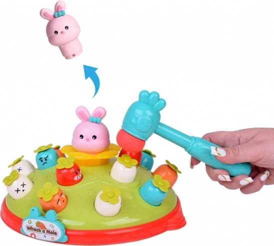 Het konijntje dat opspringt bij een juiste hamerslag, en de vrolijke melodie die het hele spel begeleidt, maken het spelen nog aantrekkelijker.