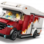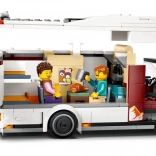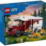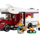 Ga op droomuitstapjes met de set LEGO City vakantiecamper. Het openklapbare interieur onthult een moderne woonruimte met keuken, toilet, stapelbedden en een babybedje, plus een tafel en stoelen voor binnen en buiten, een gitaar en een kampvuur. Voeg de minifiguren van mama, papa en de baby toe en geniet elke dag van creatief spelen en verhalen bedenken.
