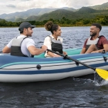 De boot is uitgerust met speciale ventielen voor snel leeglaten en veiligheidsventielen voor probleemloos opblazen en te water laten. Voor maximaal comfort is er een opblaasbare vloer die het varen aangenamer maakt. Verder beschikt hij over sterke peddelhouders en een sleepoog voor eenvoudige hantering.