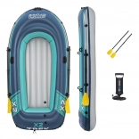 De set bevat alles wat je nodig hebt voor je wateravonturen: de boot, een paar peddels, een pomp en een reparatieset. Alles is eenvoudig te monteren en mee te nemen.