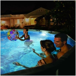Het licht is compatibel met de meeste opzet- en framezwembaden en dekt met zijn vermogen een lengte tot 7,32 m. De robuuste, waterdichte constructie, meerdere kleureffecten en eenvoudige bediening maken het tot de ideale aanvulling voor veilig en stijlvol avondzwemmen.
