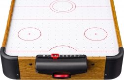 Geniet van een dynamisch tafelspel dat je reactievermogen, behendigheid en reflexen test. Dankzij het geperforeerde speelveld en de lucht aangevoerd door de ingebouwde ventilator glijdt de puck razendsnel zonder onnodige wrijving. Het houten uiterlijk van de zijkanten en de compacte afmetingen maken het een stijlvolle aanvulling op elk interieur.