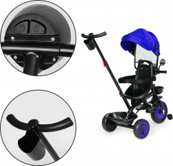 Het 3-in-1 systeem laat je de kap, beugels en ouderduwstang stapsgewijs verwijderen – van de modus "driewieler met geleiding" tot een zelfstandige traditionele driewieler. De praktische uitrusting omvat een interactief licht met 4 melodieën en kleurrijke verlichting, een bekerhouder en 2 opbergmandjes voor alles wat je nodig hebt tijdens een wandeling.