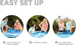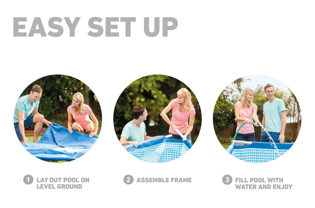 Geniet volop van de zomer met het stabiele INTEX tuinzwembad, dat een robuust frame combineert met duurzaam 3-laags PVC voor een lange levensduur en veilig zwemmen. Dankzij het volume van 7127 liter heeft het hele gezin, inclusief opblaasartikelen, ruim voldoende plek.